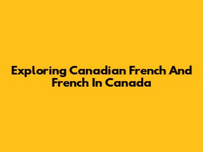 Exploring Canadian French And French In Canada