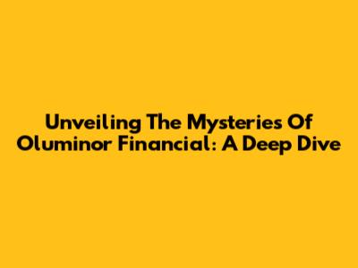 Unveiling The Mysteries Of Oluminor Financial: A Deep Dive