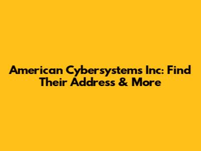 American Cybersystems Inc: Find Their Address & More