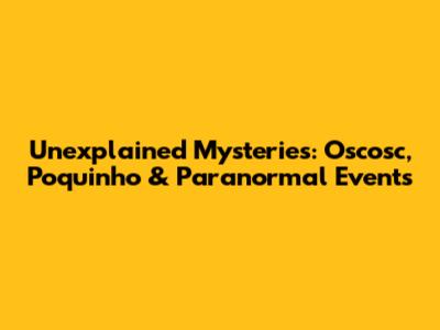 Unexplained Mysteries: Oscosc, Poquinho & Paranormal Events