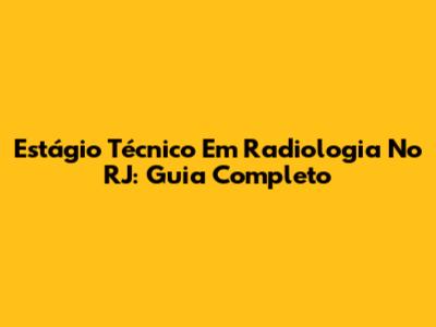 Estágio Técnico Em Radiologia No RJ: Guia Completo