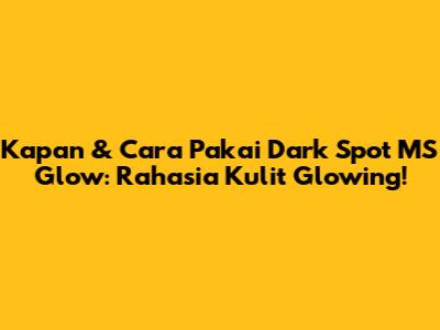Kapan & Cara Pakai Dark Spot MS Glow: Rahasia Kulit Glowing!