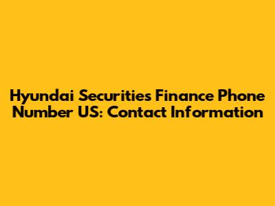 Direct Phone Numbers for Hyundai Securities Finance in the US