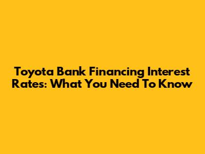 Toyota Bank Financing Interest Rates: What You Need To Know
