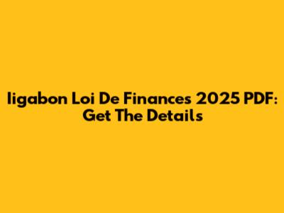 Iigabon Loi De Finances 2025 PDF: Get The Details