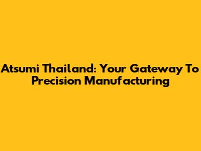Atsumi Thailand: Your Gateway To Precision Manufacturing