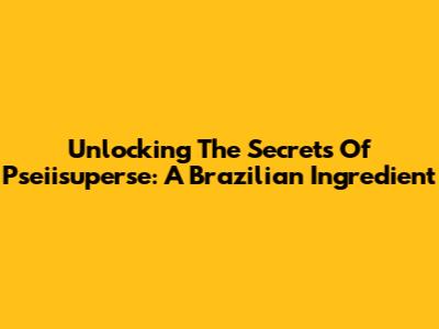 Unlocking The Secrets Of Pseiisuperse: A Brazilian Ingredient