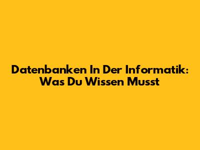 Datenbanken In Der Informatik: Was Du Wissen Musst