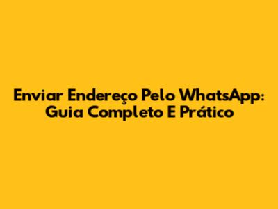 Enviar Endereço Pelo WhatsApp: Guia Completo E Prático