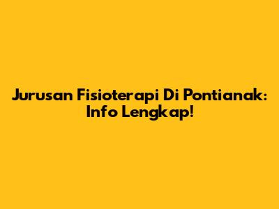 Jurusan Fisioterapi Di Pontianak: Info Lengkap!