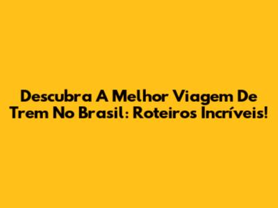 Descubra A Melhor Viagem De Trem No Brasil: Roteiros Incríveis!