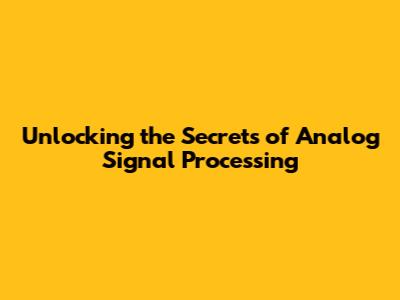Understanding Analog Signals and Their Processing