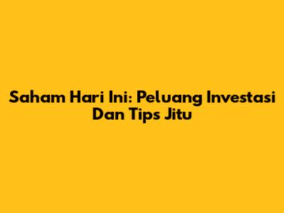 Saham Hari Ini: Peluang Investasi Dan Tips Jitu